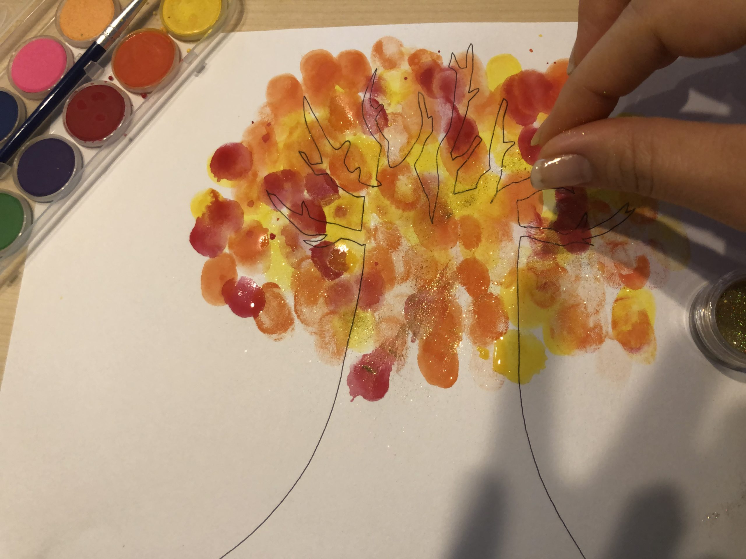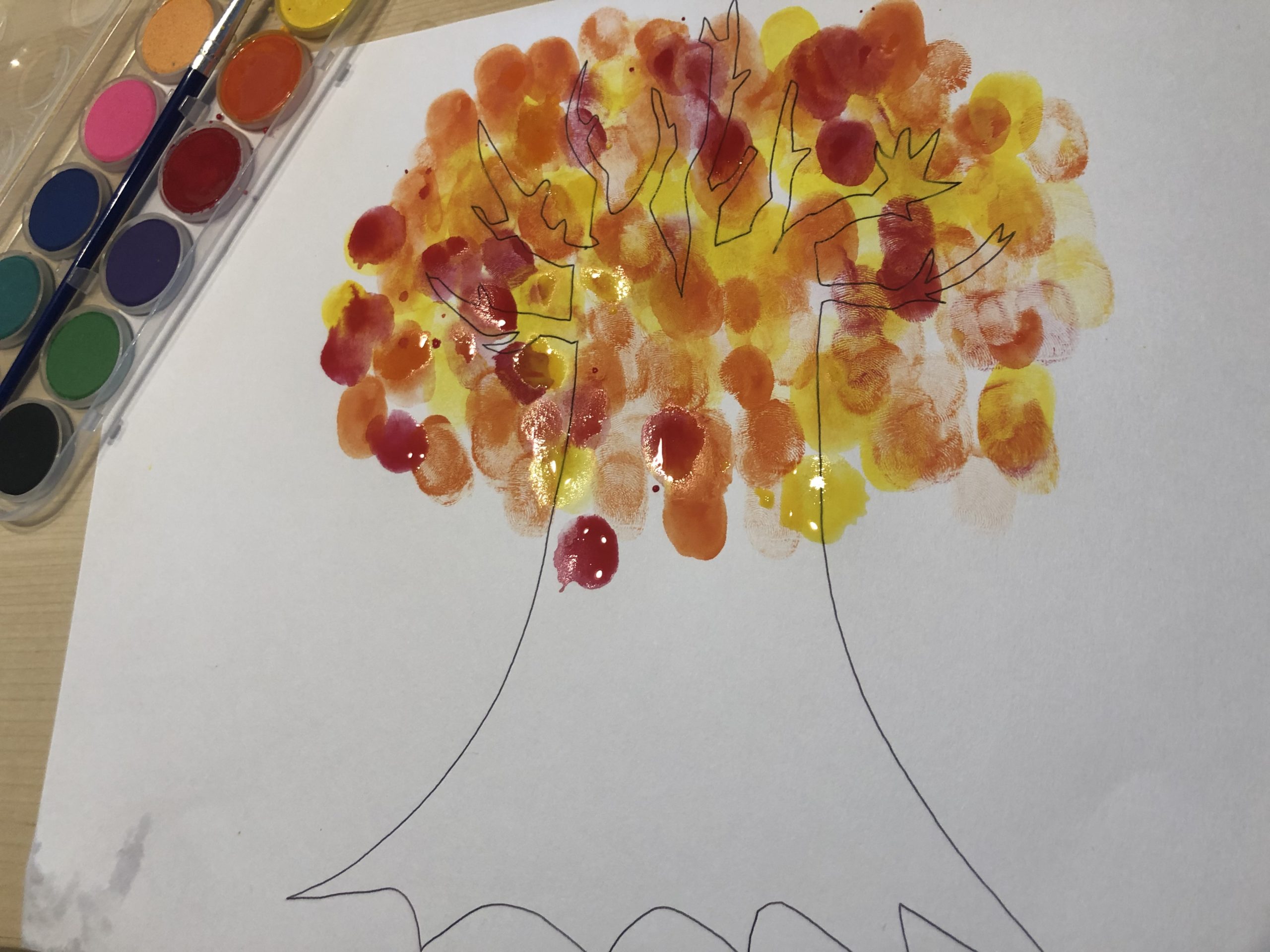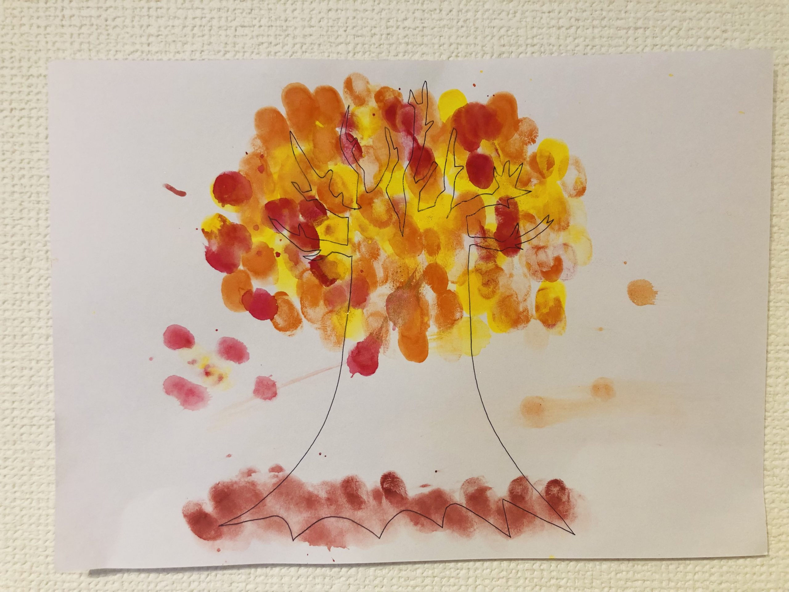 指スタンプで秋の紅葉を描きました。#秋の工作 pic.twitter.com/ULD4kuT66A