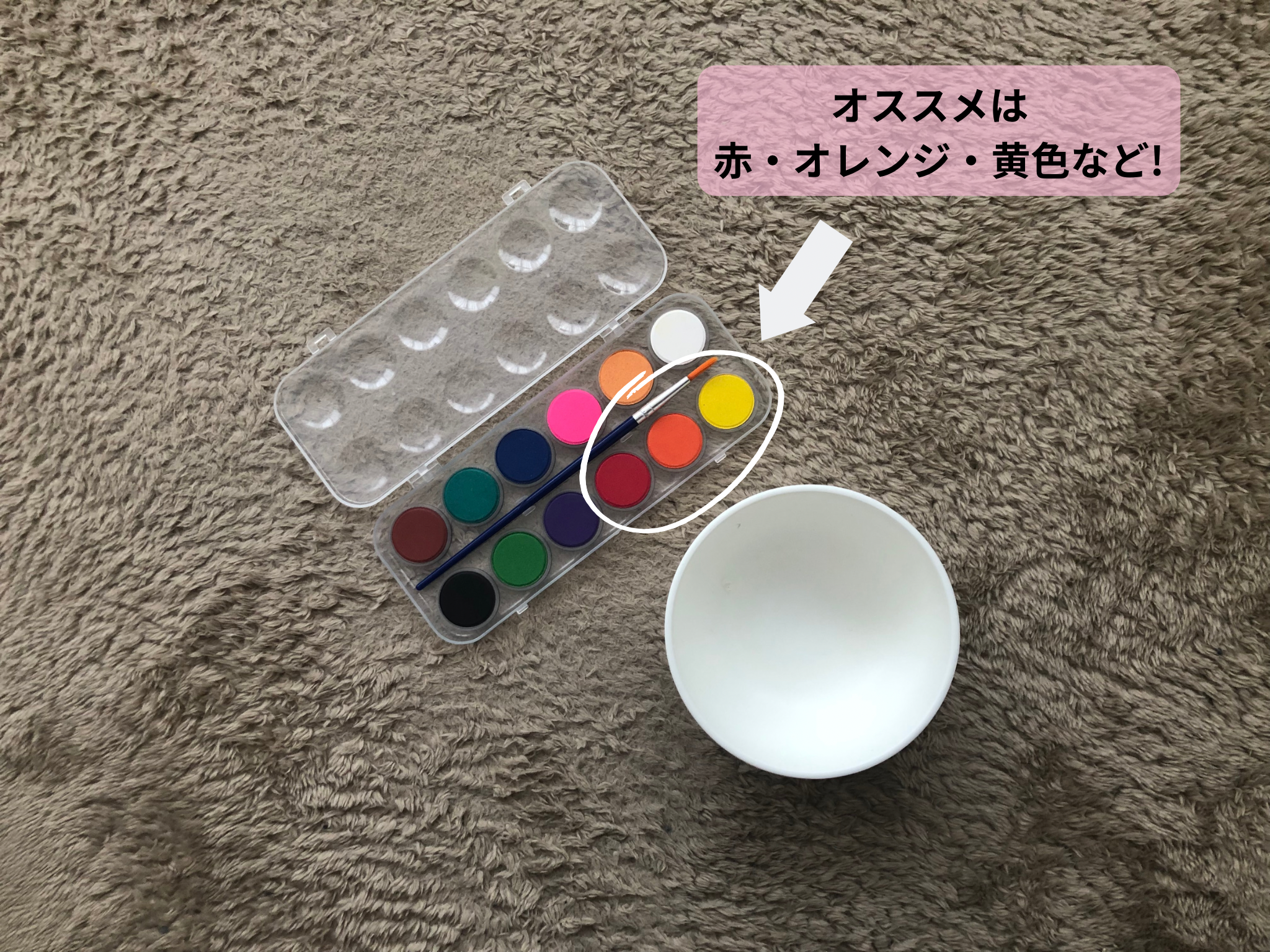 今回は固形タイプですが、通常のチューブタイプのえのぐを用意する場合はパレットに出しましょう。