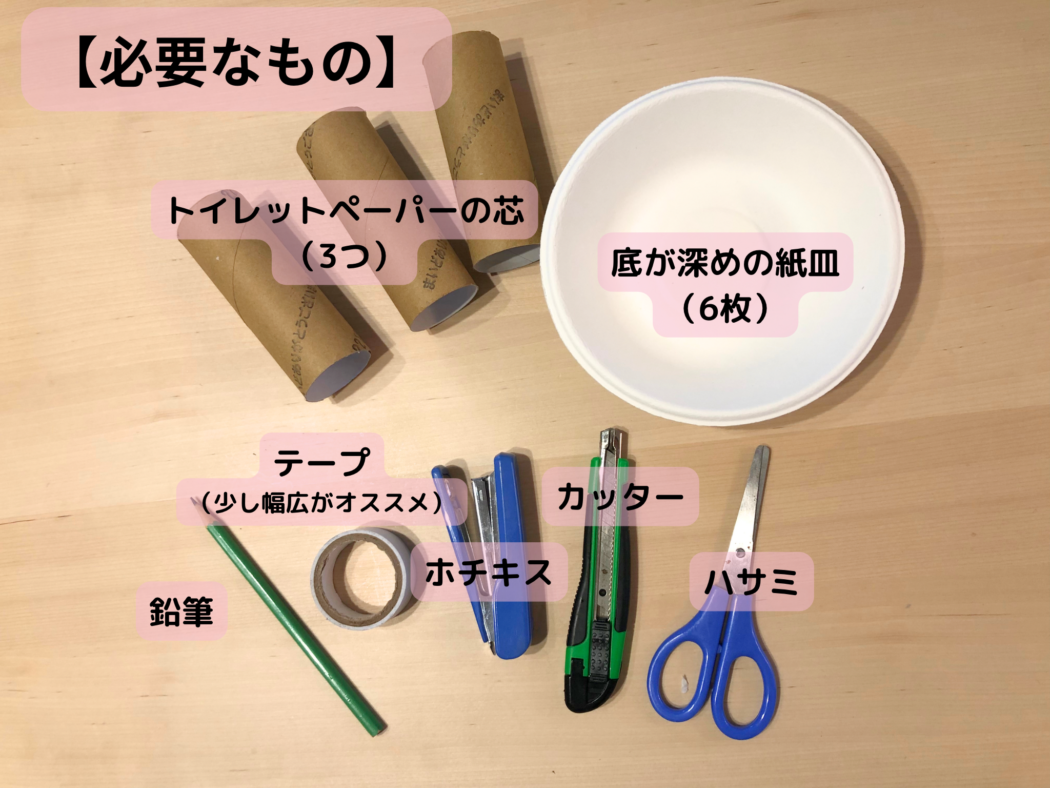 1.トイレットペーパーの芯をテープで3つ繋げる