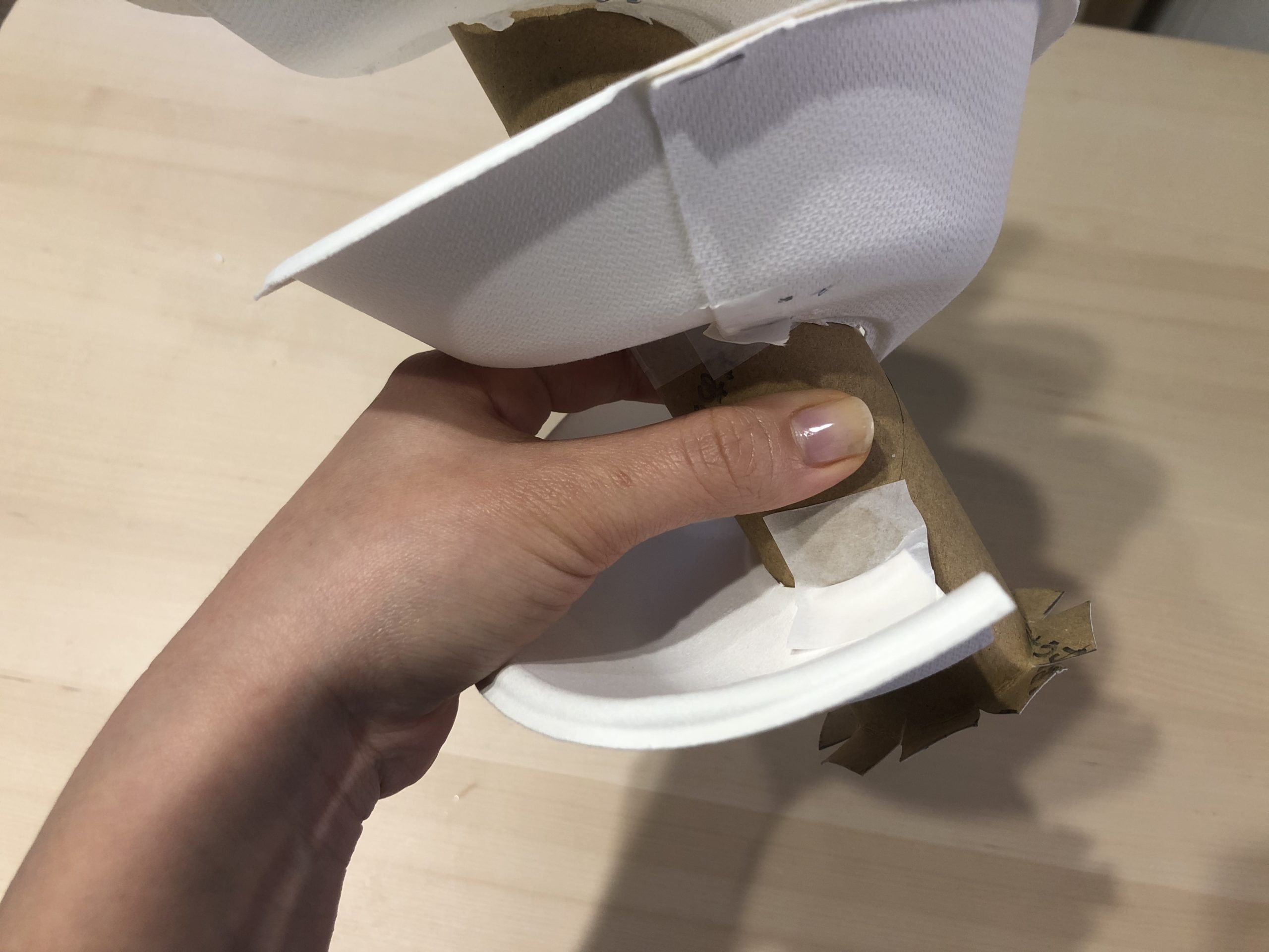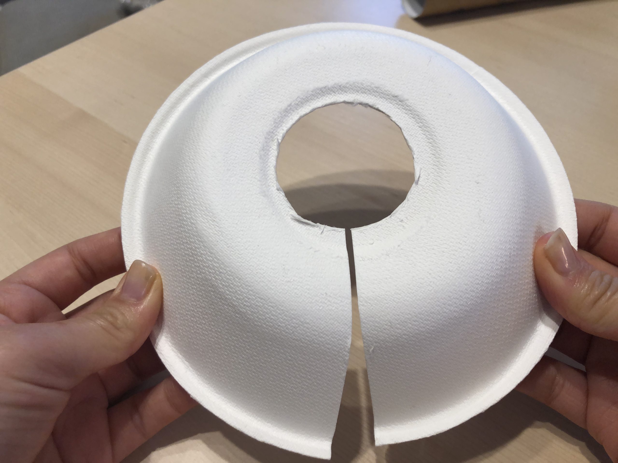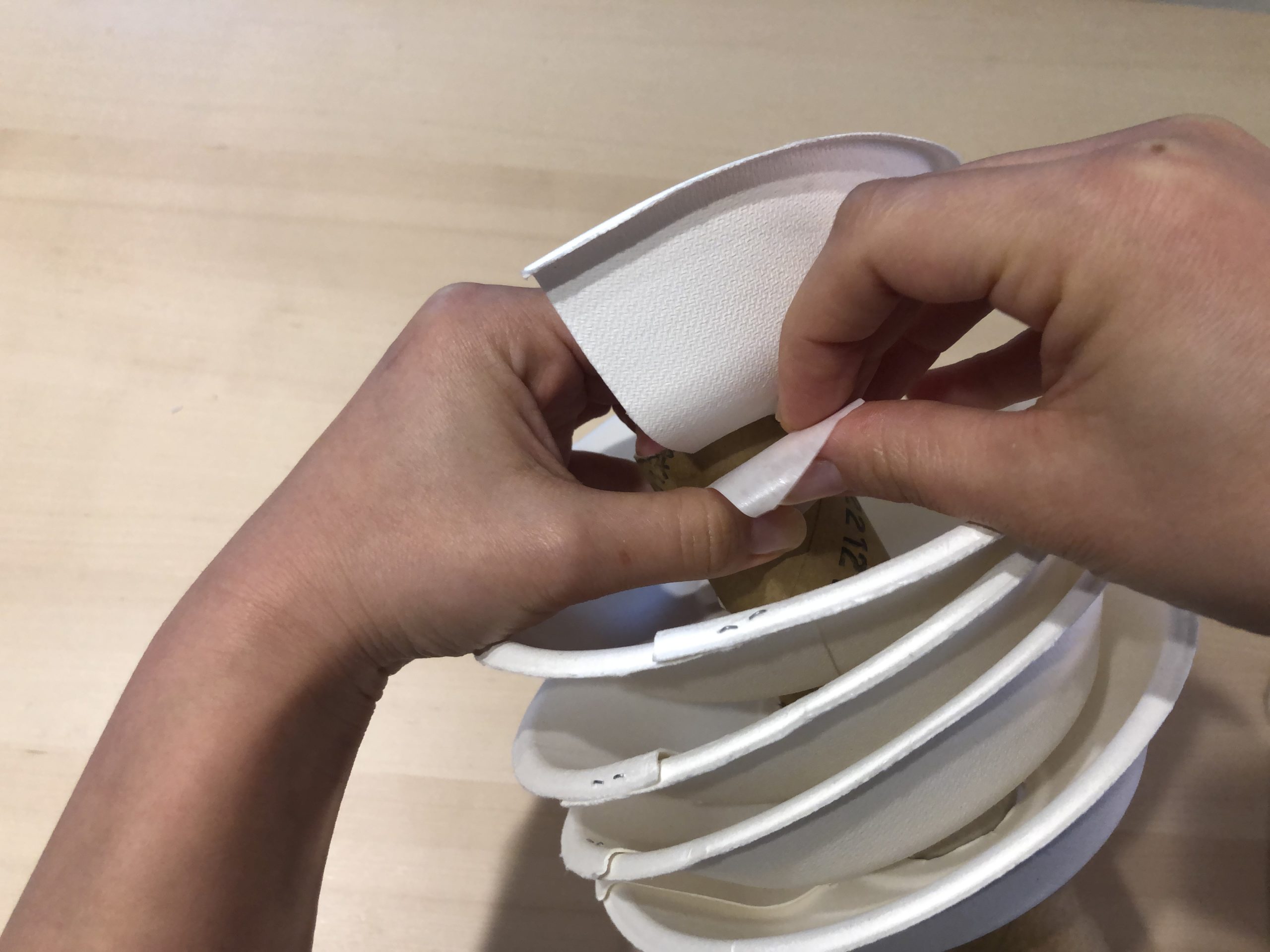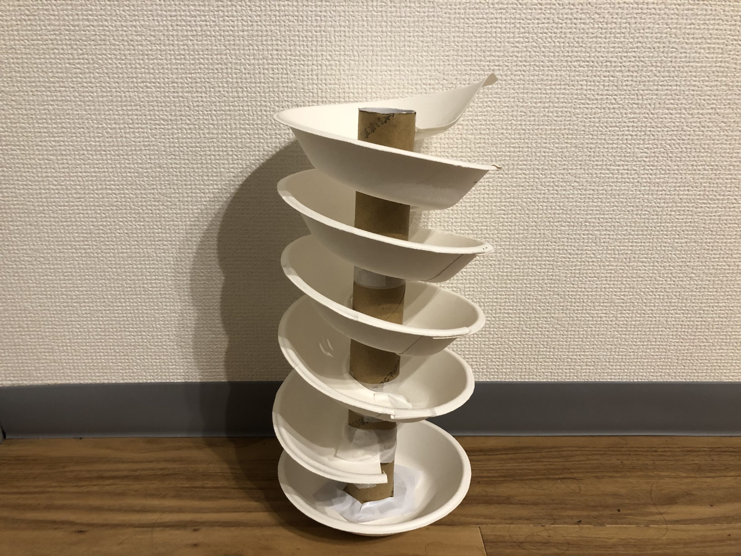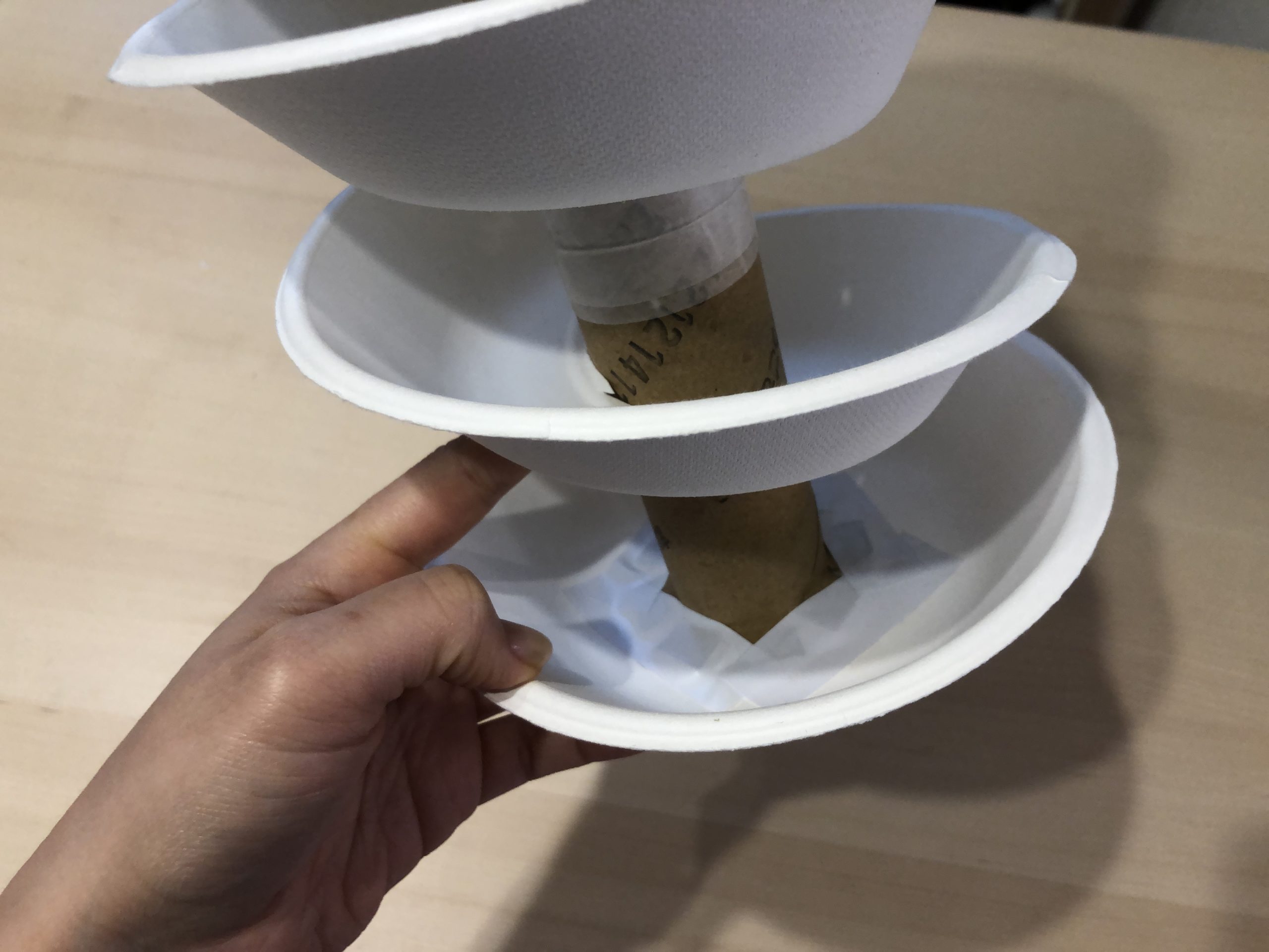 7.紙皿をらせん状になるようにして、ホチキスで止める