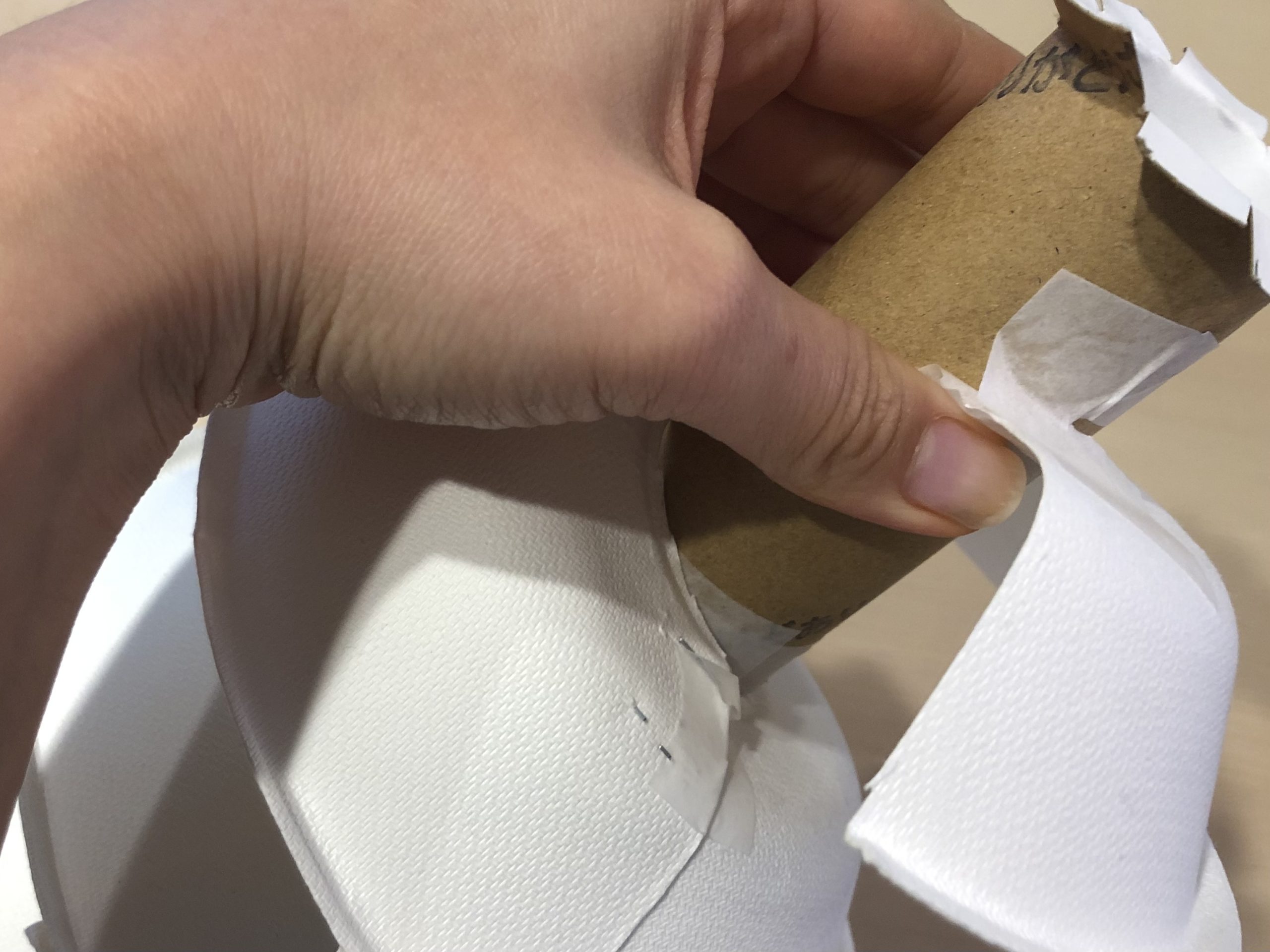 10.最後に芯の一番下に、テープで受け皿を取り付ける