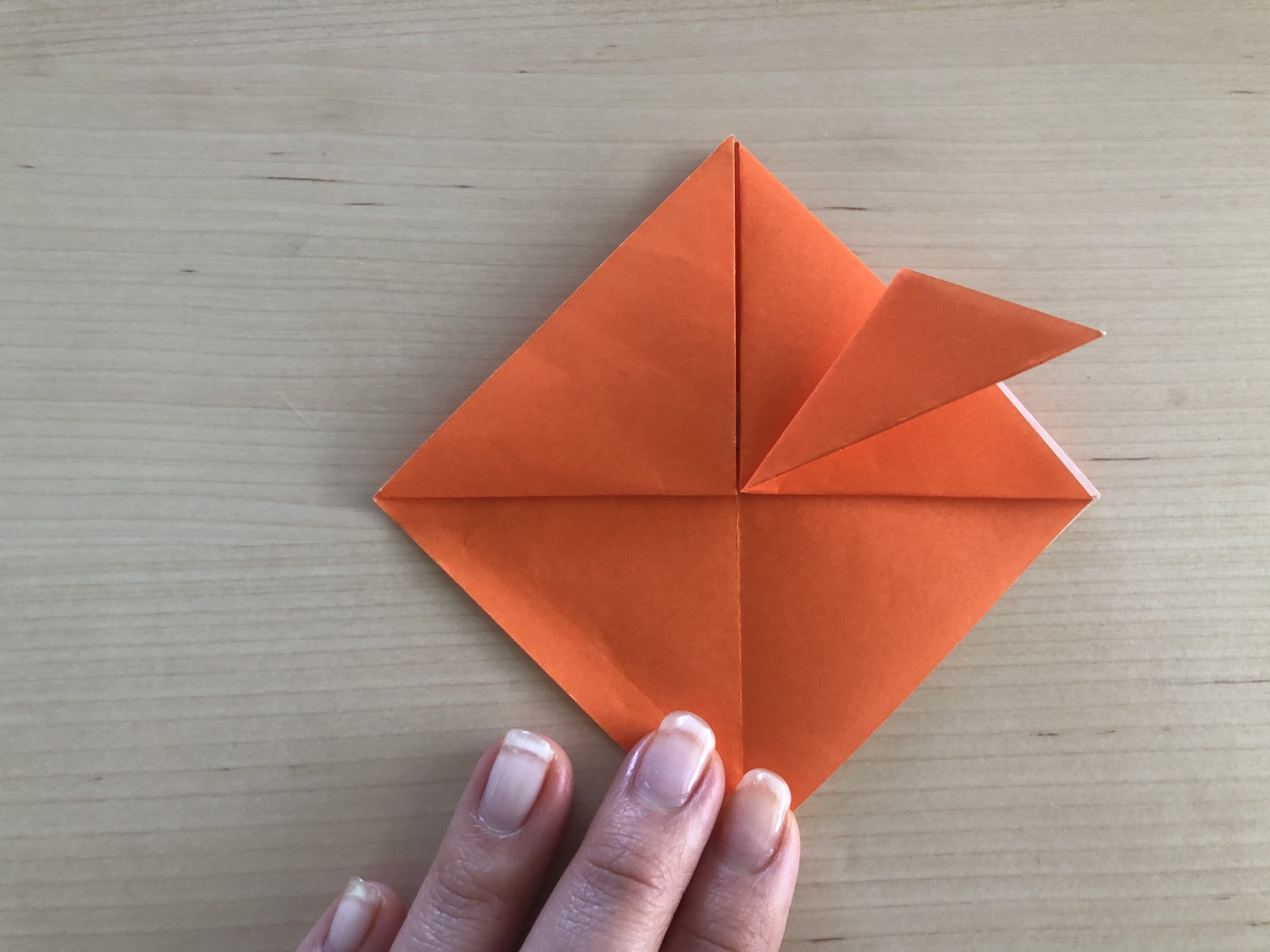 5.180度向きを変えて、4で折った部分を斜めに折る(左右)