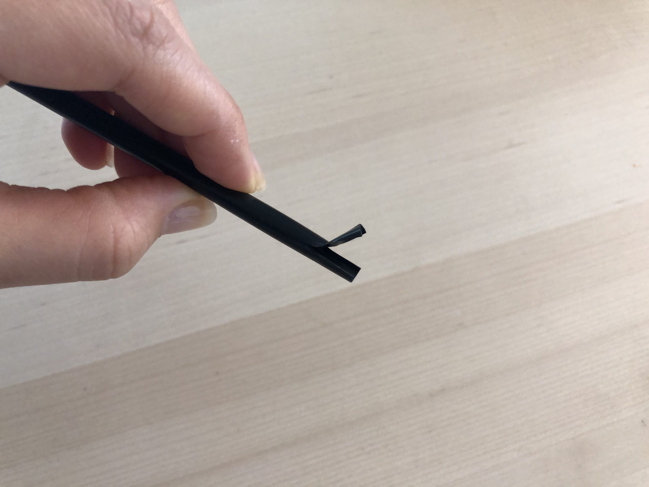 上手くとめられない場合は、ストローを下の図のように切って開いてから、とめましょう。