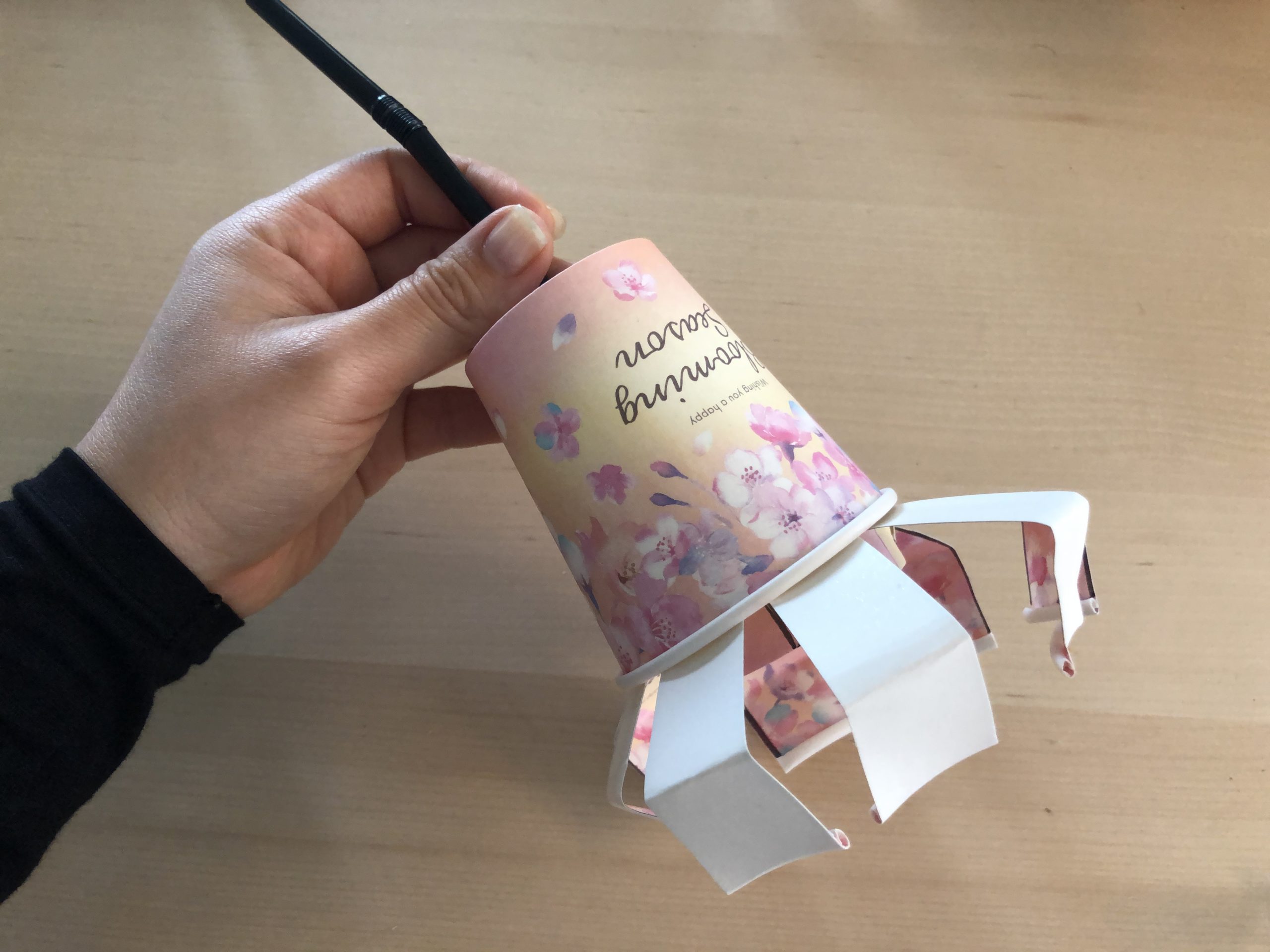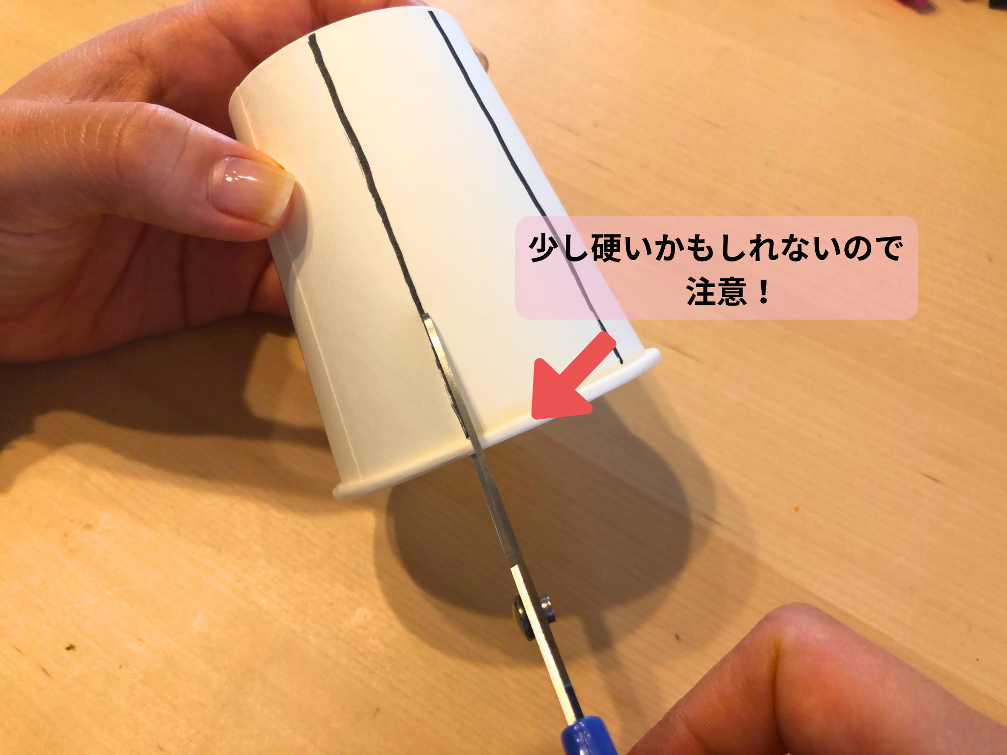 紙コップを切る際に、硬さに気をつける