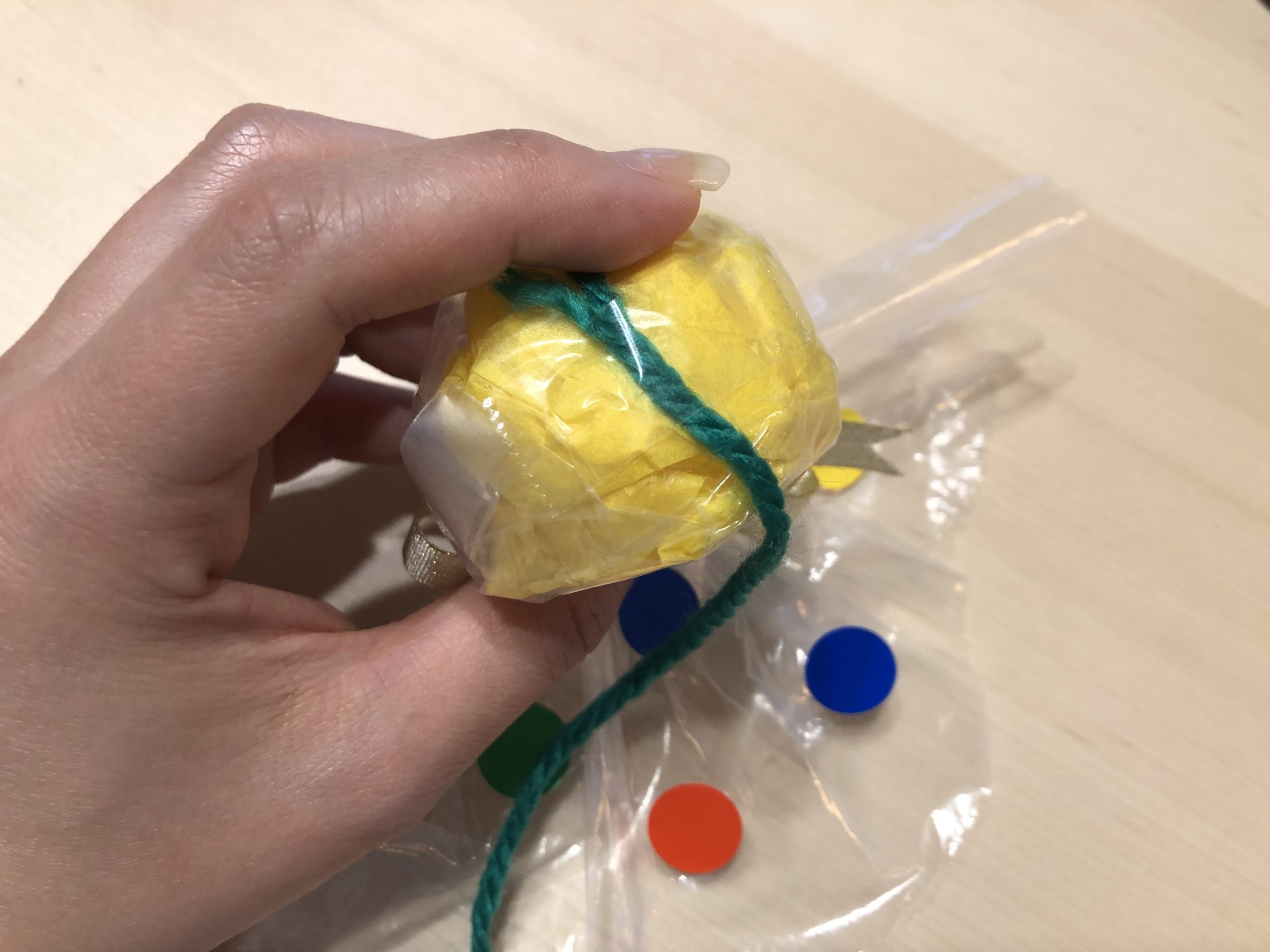 固定しておくと、てるてる坊主らしくなるだけではなく、作業がしやすくなります。
